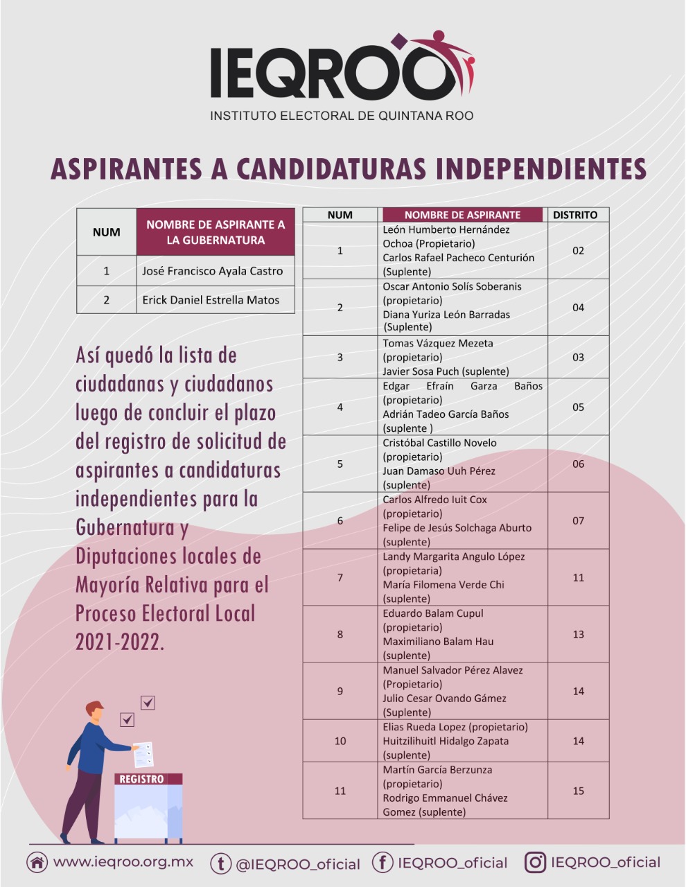 En el acuerdo aprobado se señala que; tal situación tendrá un impacto sustancial en las actividades de cada una de las áreas que conforman este Instituto, tanto en el aspecto ordinario como particularmente en las correspondientes al procesos electoral local del 2022, en el que la ciudadanía quintanarroense elegirán la titularidad de la Gubernatura y diputaciones al Congreso local, así como la instrumentación de consultas ciudadanas en los municipios de Benito Juárez, Isla Mujeres, Puerto Morelos y Solidaridad.